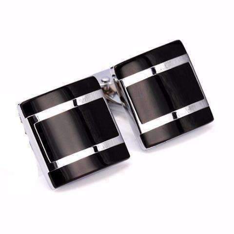 Formal Introduction Stainless Steel & Black Enamel Square Flip Cufflinks