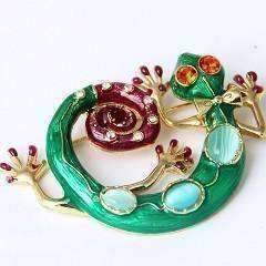 Gecko Brooch Green Enamel and Crystal Sweater Pin for Women