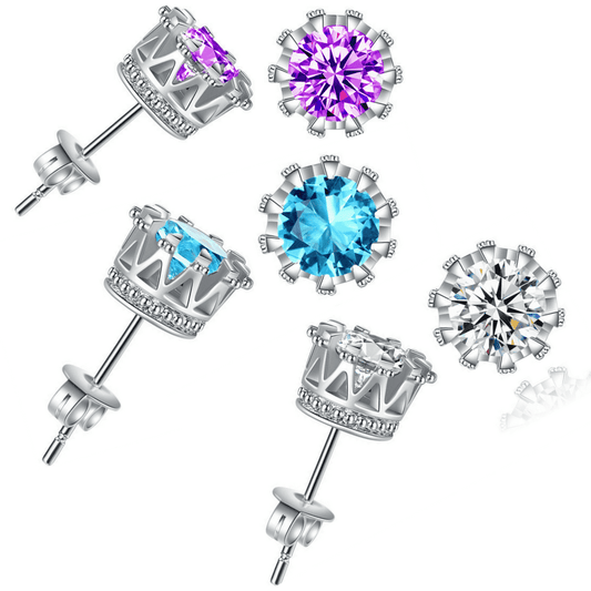 Majestic Crown IOBI Simulated Diamond Cz Stud Earrings in Four Colors For Woman