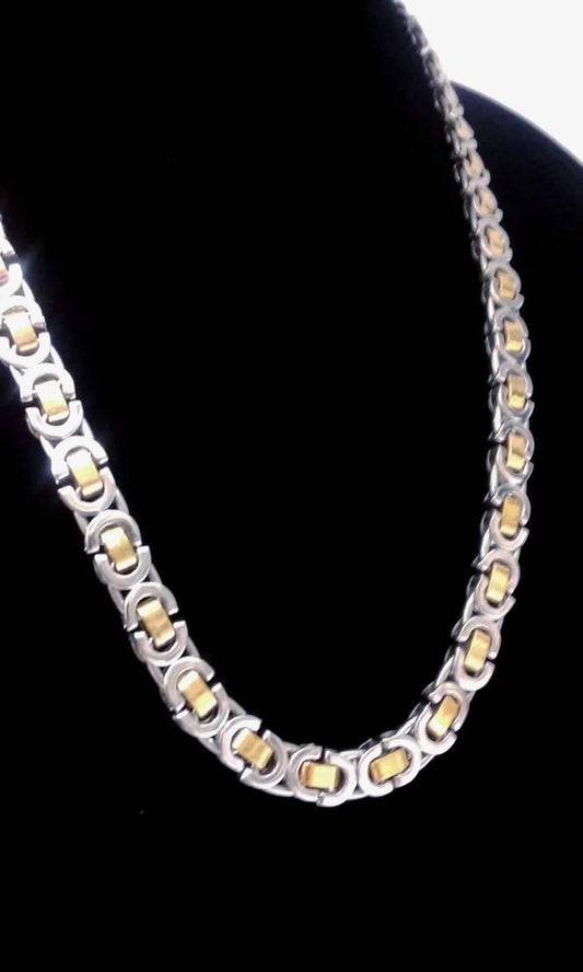 LYNX 22 inch Two Tone Flat Byzantine Link Stainless Steel Necklace