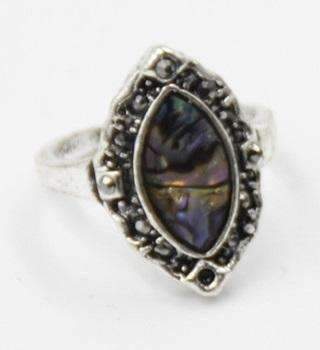 Marquis Abalone Shell and Black Crystal Vintage Silver Ring