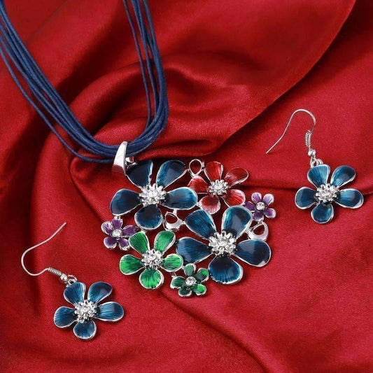 Spring Bouquet Enamel Flower Necklace and Earrings - In Three Colors