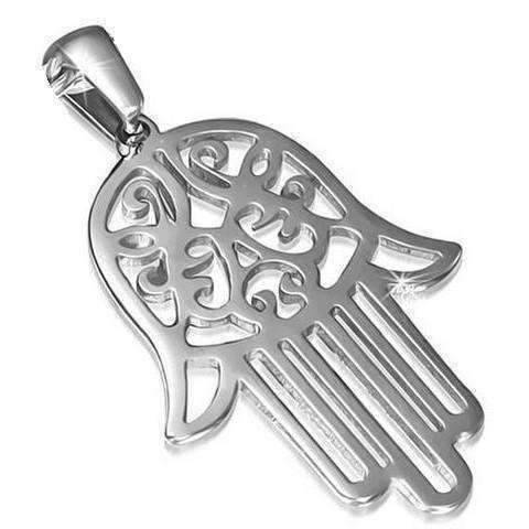 Stainless Steel Hamsa Hand Necklace and Stud Earring Set