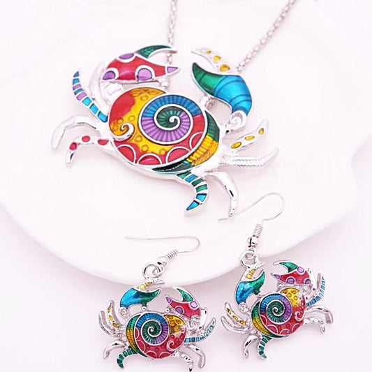 Eclectic Elephant Enamel and White Gold Plated Necklace and Earrings Set for Women