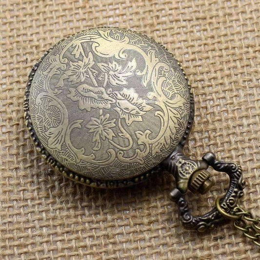 Wild Stallion Bronze Engraved Antique Style Pocket Watch Necklace