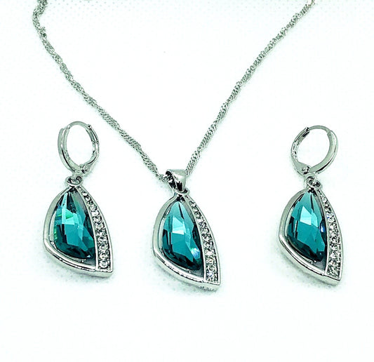 Abstract Aqua Austrian Crystal Necklace & Earrings Set for Women
