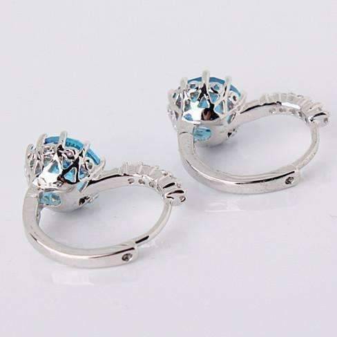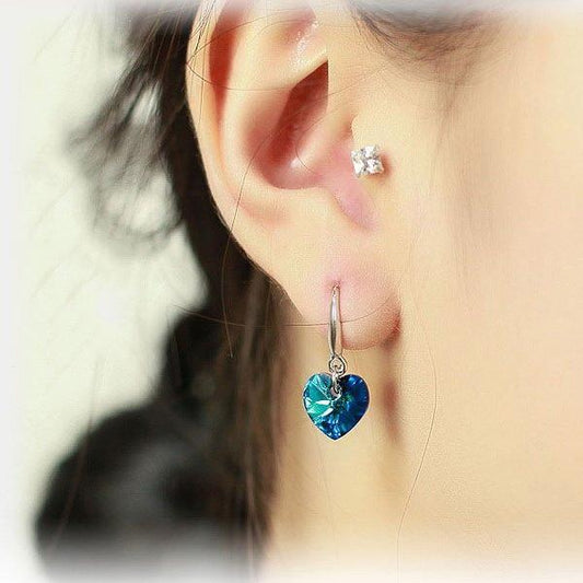 14K White Gold Plated Aqua Blue Austrian Crystal Heart Drill Earrings for Women