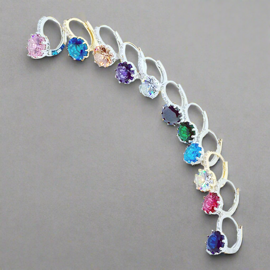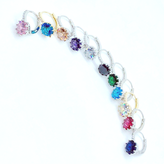 14K White Gold Plated Setting Topaz CZ Solitaire Hoop Earrings For Woman