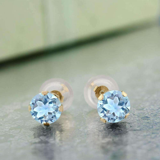 Genuine 1.20CTW Sky Blue Topaz 10K Yellow Gold IOBI Precious Gems Stud Earrings