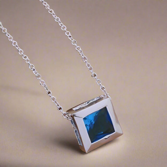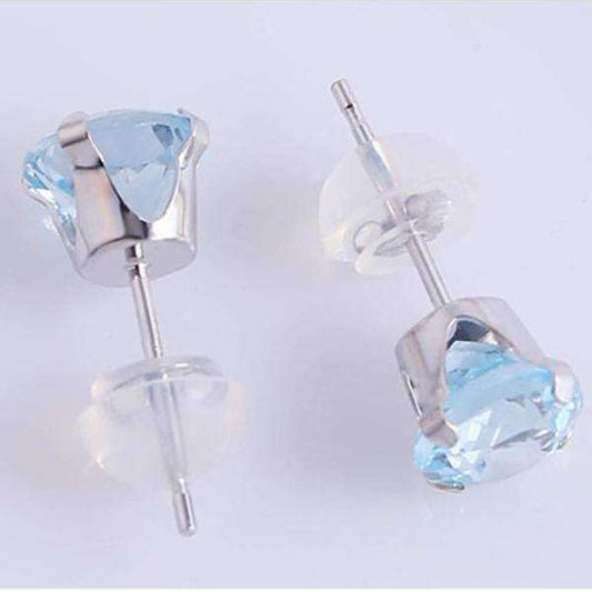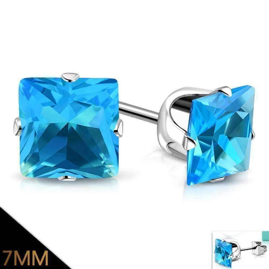 Aqua Princess Cut Swiss Cubic Zirconia Stud Earrings 316 Stainless Steel