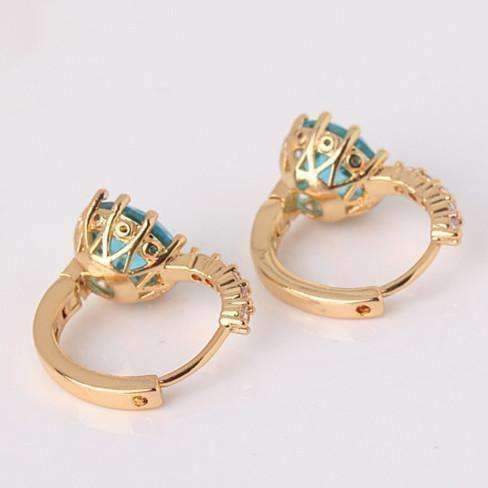 18K Yellow Gold Plated Blue Topaz CZ Solitaire Gold Plated Hoops For Woman