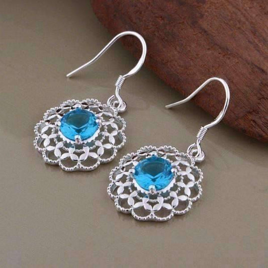 Aqua Blue Austrian Crystal Heart Silver Thread Earrings for Woman