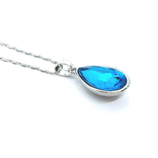 Aqua Dew Drop 12 Carat IOBI Crystal Tear Drop Pear Shape 14K White Gold Plated Necklace For Woman
