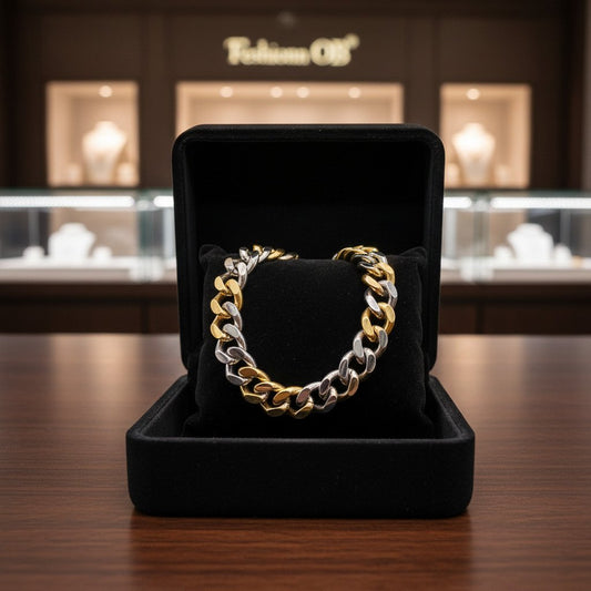 Two Tone Flat Cuban Link Stainless Steel Men's Bracelet