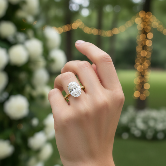 18K Yellow Gold Plated Alexandra Dora 5CT Oval OB Simulated Diamond Ring with French Pavé Setting for Women Bridal Engagement Wedding Anniversary Gift