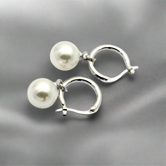 18K Gold Plated Moon Drops Pearl Bead Hoop Earrings In Four Colors for Woman