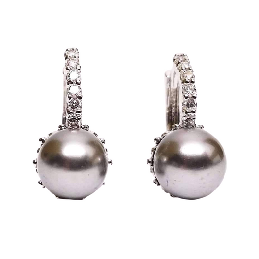 14K Gold Plated Black Pearl Bead Solitaire Cz Hoops Earrings for Woman
