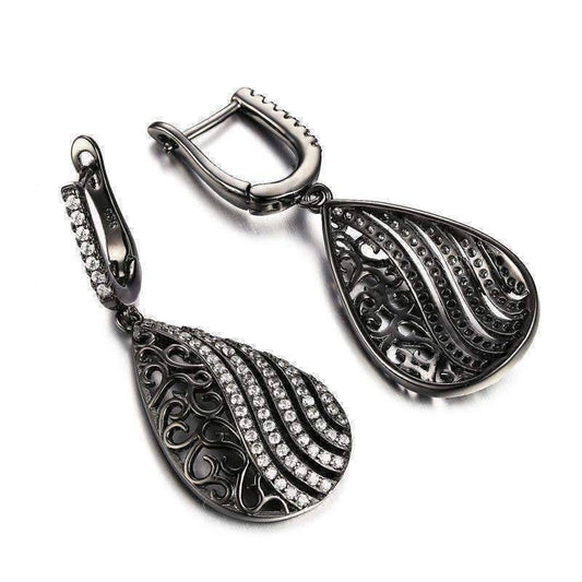 Ebony Swirl Black Gold Earrings – 63 CZ Teardrop Design for Women