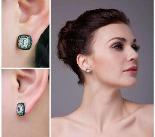 Shamballa Charcoal Crystals on 925 Silver Stud Earrings