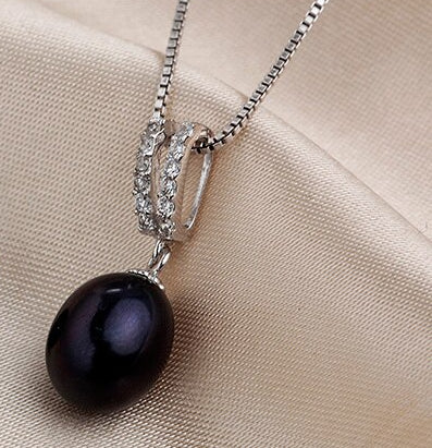 Tahitian Black Genuine Freshwater Pearl Drop 925 Sterling Silver Necklace for Women