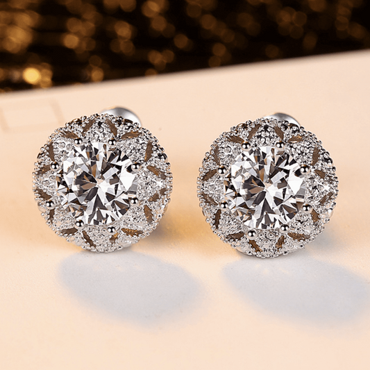 Vintage Milgrain Floral 14K White Gold Plated Halo CZ Earrings for Woman