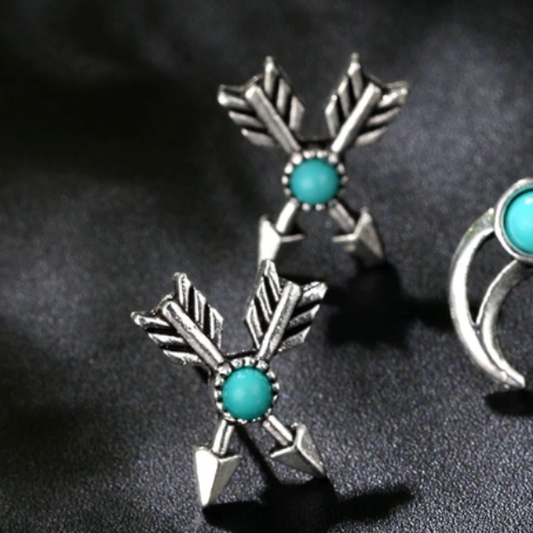 Mix & Match Six Piece Stud Earring Ensemble Blue - Green
