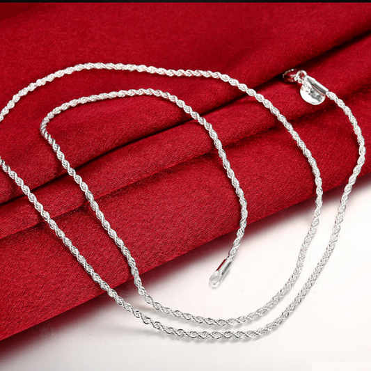 2mm Diamond Cut Silver Rope Chain 16-24 inches for Women or Men Every Day Wear