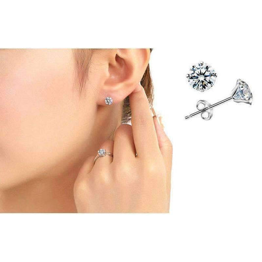 Four Prong Sterling Silver Martini Set CZ Stud Earrings for Women