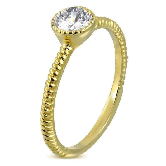 14K Gold Plated Fairy Tale Twisted Rope Bezel Set IOBI Crystals Solitaire Ring for Woman