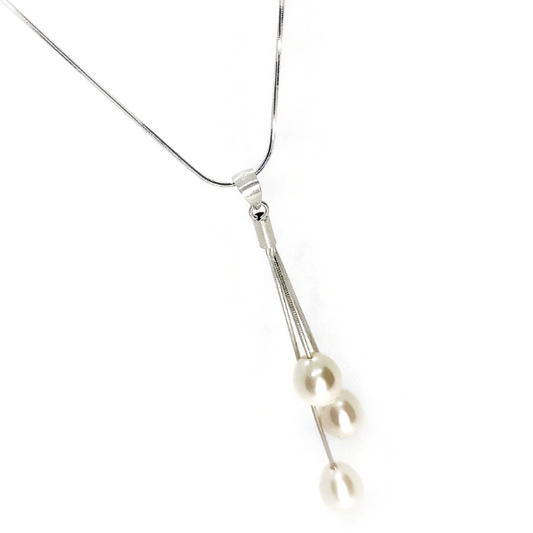 White Triple Genuine Freshwater Pearl Sterling Silver Tassel Necklace for Women