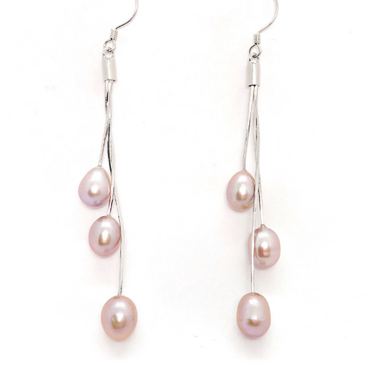 Lavender Triple Genuine Freshwater Pearl Sterling Silver Tassel Earrings for Women