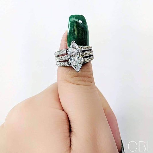 Helena 3CT Marquise Cut Triple Pavé Band OB Simulated Diamond Ring for Women Bridal Engagement Wedding Anniversary Gift