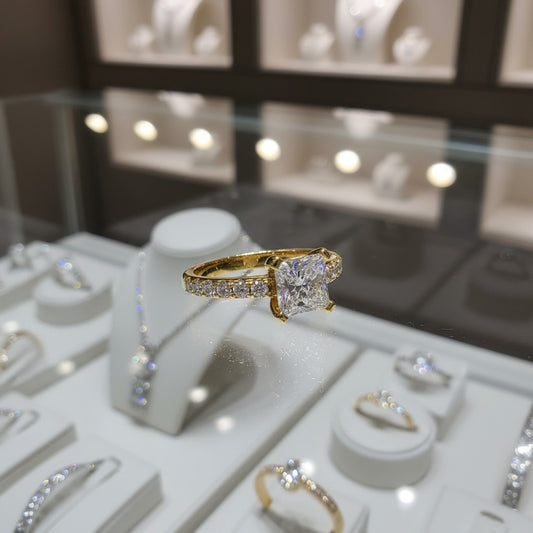 Chantelle 1.25CT Princess Cut Petite Pavé 10K Solid Yellow Gold OB Simulated Diamond Ring for Women Bridal Engagement Wedding Anniversary Gift