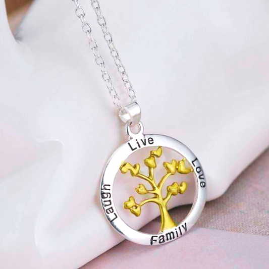Live, Love, Laugh Family Tree Necklace in 14K White & Yellow Gold-Plated for Women – Perfect Gift for Special Occasions, Birthdays, Holidays & More