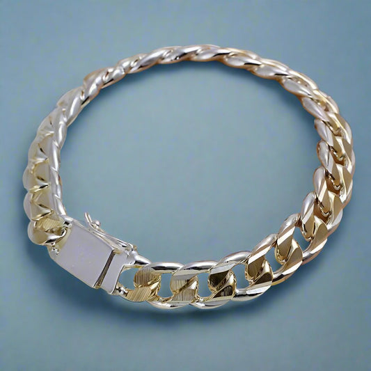Elegant Two-Tone Open Curb Link Bracelet with 18K Gold Accent Unisex