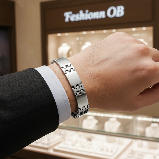 Bold Stainless Steel Cut-Out Link Bracelet for Men - Timeless & Durable