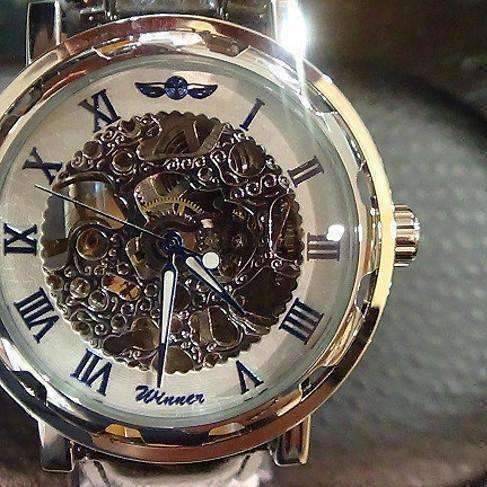 Blue Classic Skeleton Hand Wind Mechanical Watch Black Leather Strap For Men
