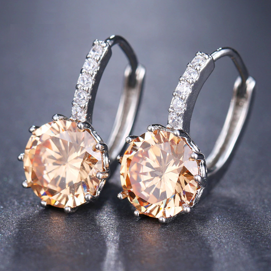 14K Gold Plated Pretty Peach 3.5CTW CZ Solitaire Hoop Earrings for Woman