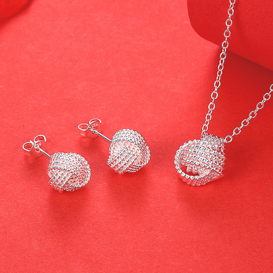 Infinite Love Knot Sterling Silver Matching Necklace and Earrings Set for Women