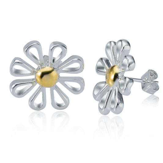 Flower-Power Daisy Two-Tone Silver Necklace and Earrings Set for Women
