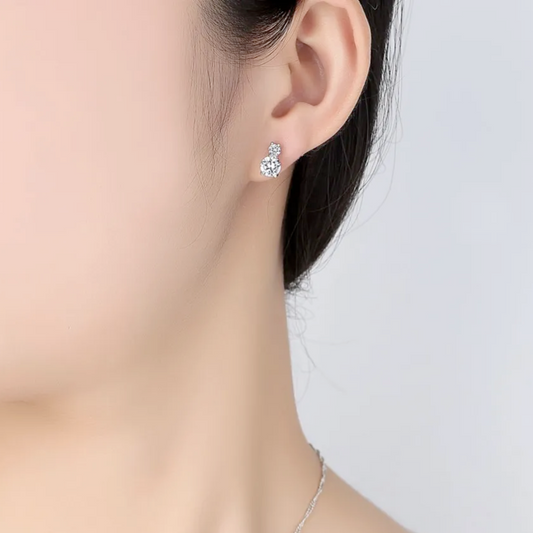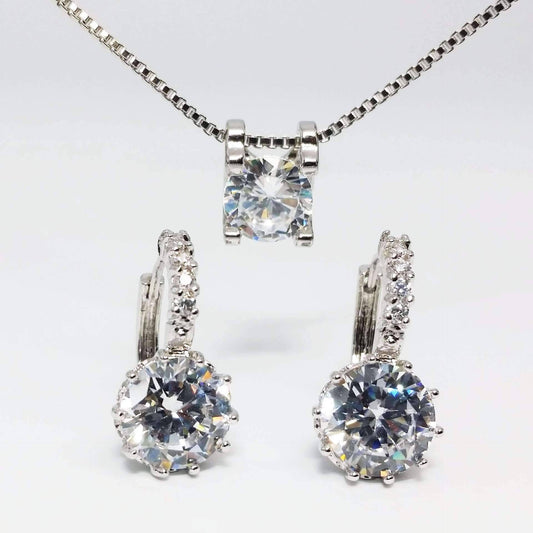 Radiant 14K White Gold Plated Floating Swiss CZ Solitaire Necklace Plus Pair of "Naked IOBI Crystals Drill" Earrings - Perfect for Women