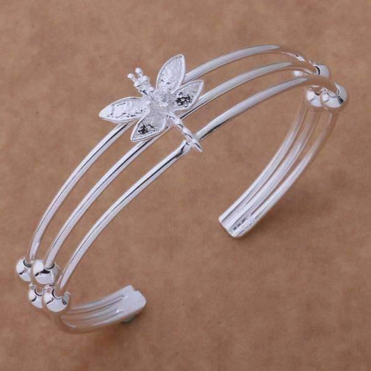 Dragonfly Silver Dangling Earrings and Matching Cuff Bracelet Set