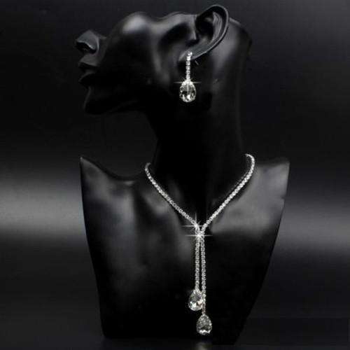 Deluxe Teardrop Crystal Choker Necklace and Earring Set