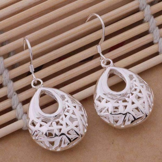 Droplet Silver Filigree Cage Matching Necklace and Earrings Set For woman