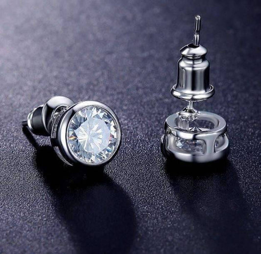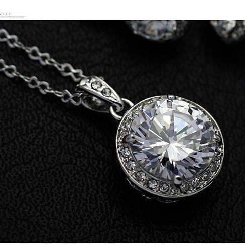 18K White Gold Plated Splendid Solitaires Round IOBI Crystals 2CT Necklace and 1CT Earrings Set For Woman