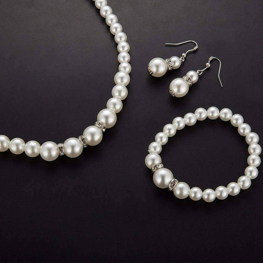 Ivory Pearl and Crystal Bead Necklace Bracelet and Earrings Set for Woman