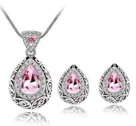 Reflections of Rose Necklace and Stud Earrings Set - Available in Four Colors