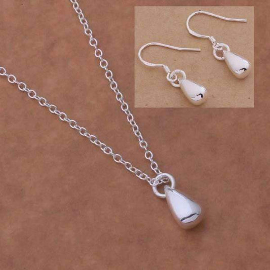 Tiny Teardrop Silver Matching Necklace and Earrings Set for Woman