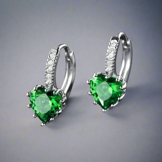 Heart Shaped Spring Green Diamond CZ Solitaire Hoop Earrings for Woman