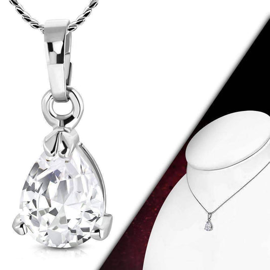 Dainty Droplet Infused Cubic Zirconia Pear Pendant Necklace